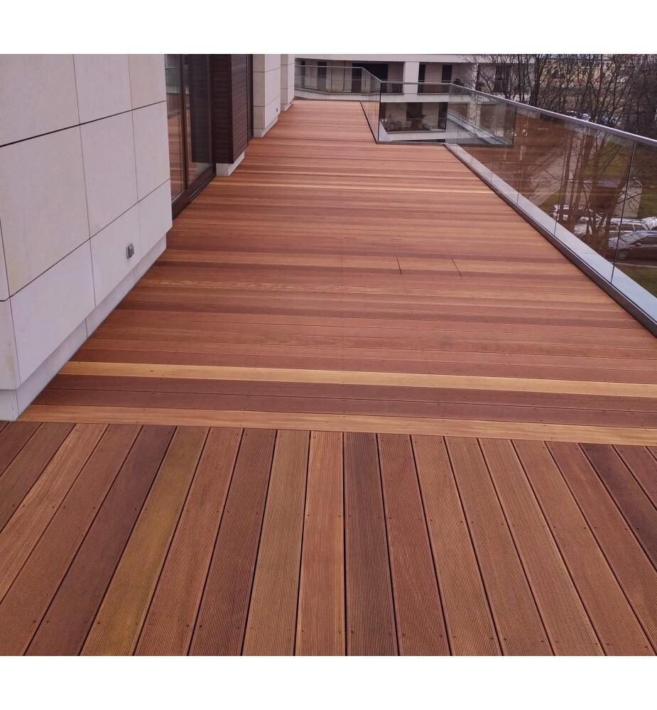 Estetyka – ciepłe barwy drewna egzotycznego podkreślają elegancję tarasu.